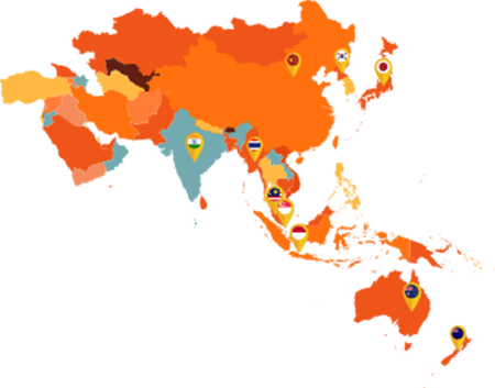 澳大利亞、印度、印度尼西亞、日本、馬來西亞、新西蘭、巴基斯坦、菲律賓、韓國(guó)、泰國(guó)、越南